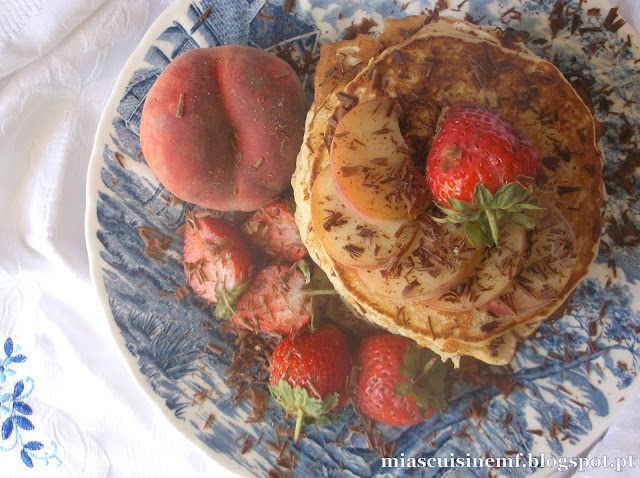 Nunca comi desses pessegos! Mas.devem ser deliciosos, tal como essas panquecas! Beijinhos