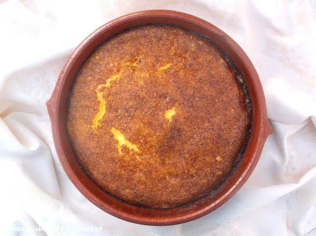 Nota: a receita original leva 12 ovos + 1kg de açúcar + 1L de leite, eu coloquei os ovos inteiros num copo medidor e coloquei a mesma quantidade de leite e açúcar, ou seja os 12 ovos correspondiam a 600ml, portanto coloquei 600g de açúcar e 600ml de leite {a quantidade de leite e açúcar vai depender do tamanho dos ovos, desta vez os que usei eram pequenos e por isso deu estas quantidades}. É também importante que coza numa assadeira/travessa de barro.